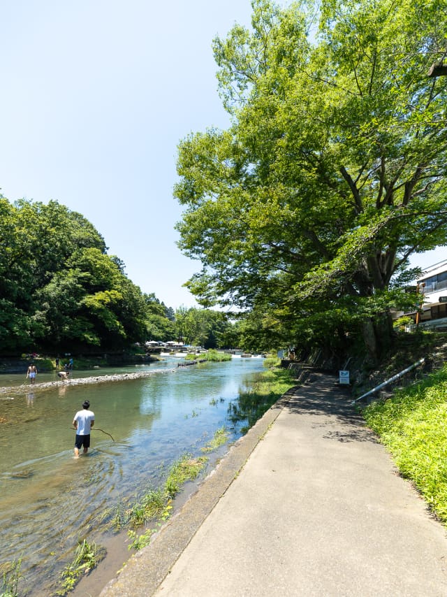 埼玉県を流れる荒川水系の一級河川「入間川」。飯能河原は飯能駅から徒歩で行ける入間川の水辺スポットとして、春から夏場にかけてこどもから家族連れまで大勢の人で賑わいます。水位が低い時間帯には膝が出るほどの浅瀬となりますが安全第一でお楽しみください。