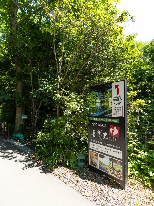 メッツアの入口そばの小径は... 宮沢湖温泉「喜楽里 別邸」に続きます。車用に別ルートもあります。温泉利用者は駐車場代無料。