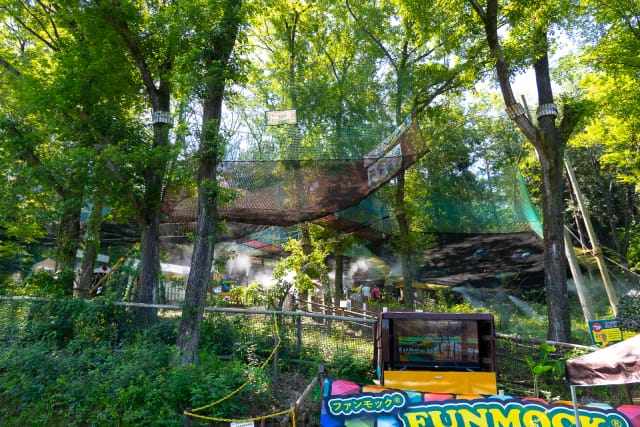 おとなもこどもも大興奮。森の中に張り巡らされたネットの中を自由自在に遊び回れる施設。ゆらゆら・ふわふわ楽しく遊べる大人気のアスレチックです。