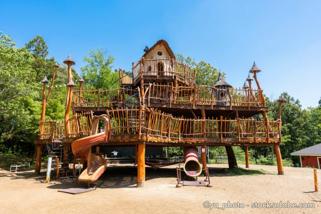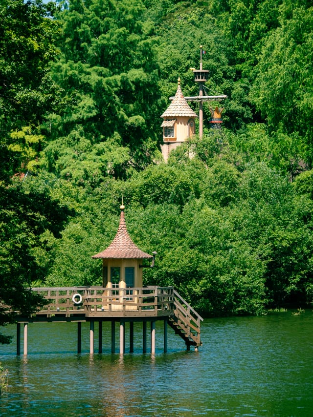 小説『ムーミン谷の仲間たち』より“しずかなのが好きなヘムレンさん”のストーリーをモチーフにしたツリーハウスのアスレチック施設です。まずその楽しいデザインに大人もこどもも思わず笑顔に! アスレチックで時間を忘れるくらい身体を動かしてください。安全に配慮した設計でお子様も安心して遊べます。なお、ペットは入れませんのでご注意を。