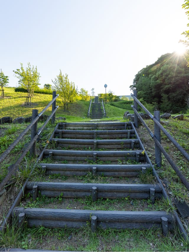 住宅街の公園としては少々高めな標高200m。広々とした眺めは晴天の昼間はもちろん、広い空の下、雄大な朝日と夕焼けの景色の両方を楽しむことができます。一日の始まりと終りにこんな風景が見られたら、日々のリフレッシュもはかどりそうですね。