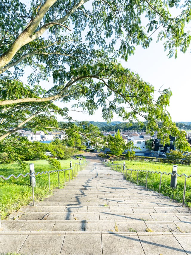 街と空を結ぶ階段。緩やかな階段なので年配の方もゆっくりと登り下りできます。