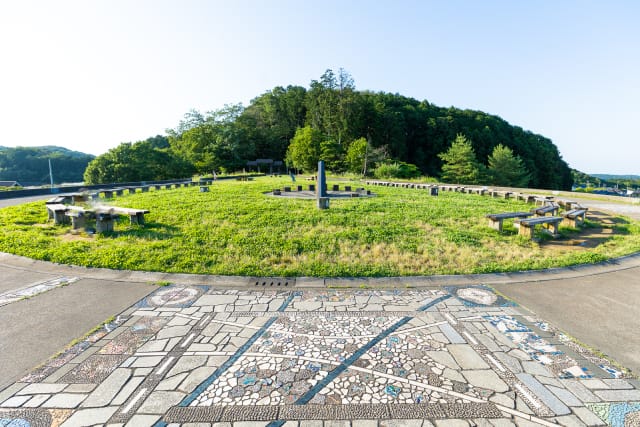 「あさひ」と名付けられた公園のシンボルはこの大きな日時計。周囲にまったく日を遮る建物などはありませんので、陽の動きをしっかり追いかけてくれます。