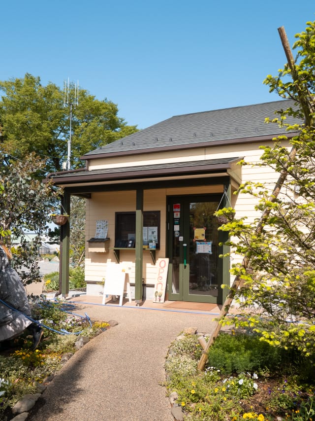入間川北岸をのぞむ場所に立つ、やわらかなクリーム色の壁とグリーンの屋根が印象的なカフエ。天然酵母を使ったパンと。自然にマッチしたナチュラルな外観がとてもかわいく、小さなテラス席もあり、一度行けば必ずリピートしたくなるショップです。