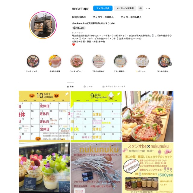 公式Instagramでは営業情報や、季節ごとのメニューの紹介などを発信。かわいい店内の様子もチェックできます。