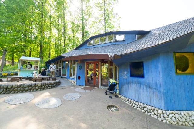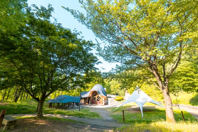 「子ども劇場」はコンサートや様々なイベントが行われるホールになっています。樹齢100年を超えるヒノキの丸太を使用したドーム状の 屋根や、窓、照明の形も楽しい空間です。2階建てになっており広場には2階でつながっている立体的な造りになっています。イベント広場にはベンチも複数ありますのでお弁当を広げてランチするのも楽しげ♪