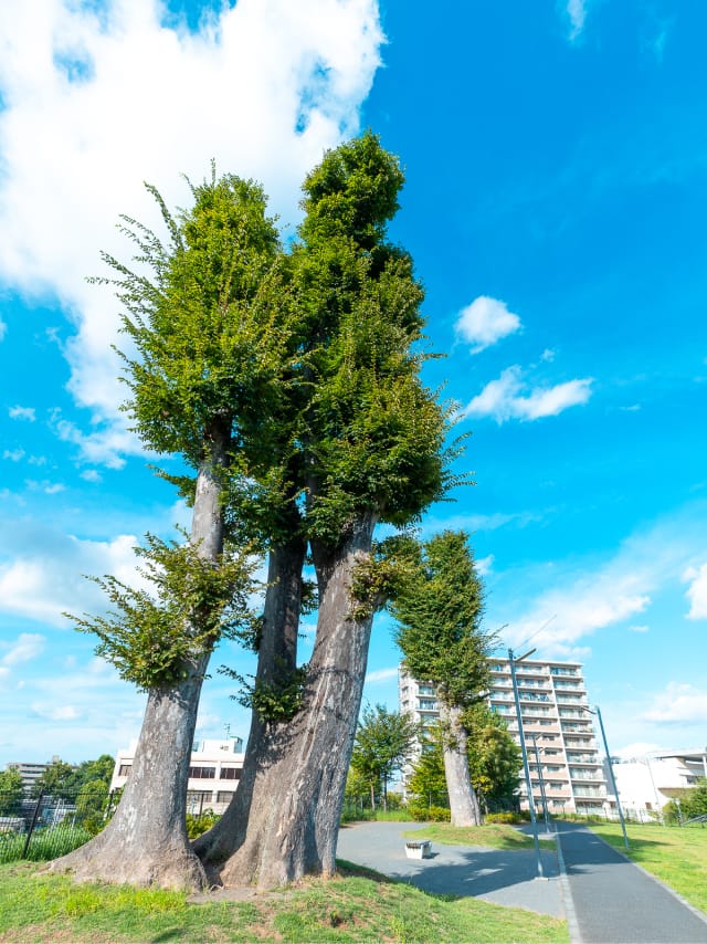 階段を登って公園に出ると巨大なケヤキがお出迎え。もともと入間川小学校の跡地を整備して造られた公園ですが、この巨大なケヤキは小学校時代の校樹を残したものだそうです。