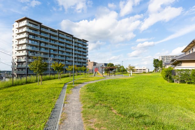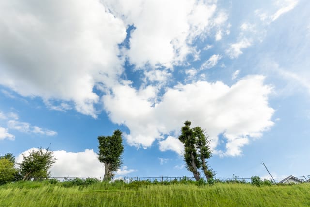 高台にある公園なので空と芝生のカラーの対比が気持ち良い空間です。