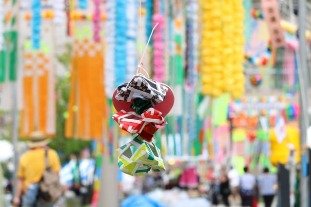 市民広場から七夕通り商店街を中心とした沿道で催される夏の祭り。商店、事業所、市民の皆さんが出品した七夕飾りで埋めつくされます。 公式ページ