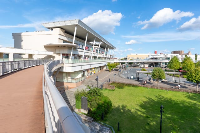 駅東口からはペデストリアンデッキを使って、雨天時なども濡れずにアクセス可能です。