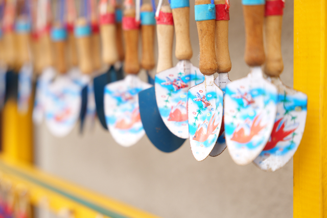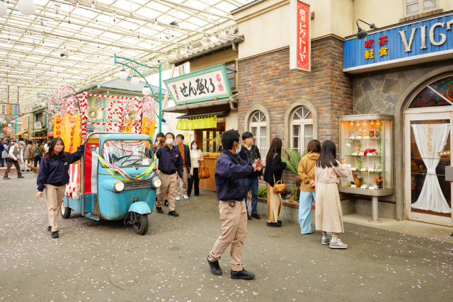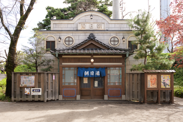 懐かしいデザインの銭湯や、実際に買い物できるお店もたくさんあります。