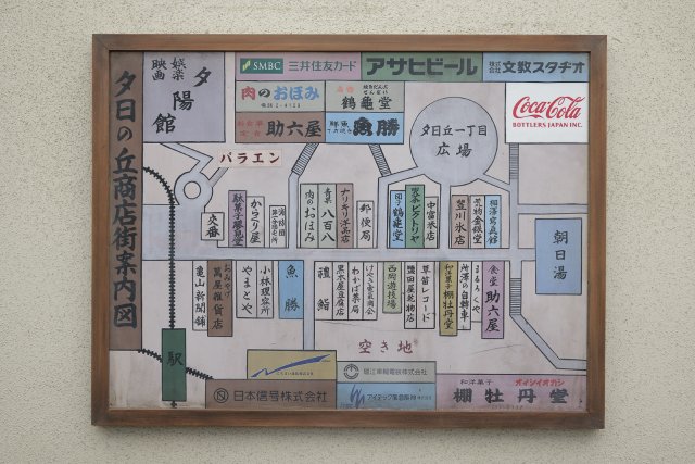 今でも少し歴史のある街に行けばよく見かける町内地図。面積などの地図的な正確さよりもお店の位置関係などの見やすさに重きを置いたものです。