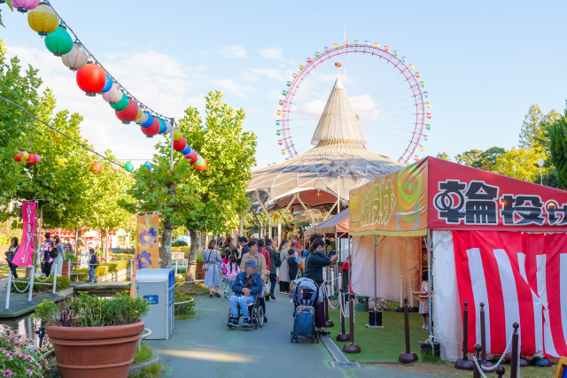 リニューアル前の入場ゲート付近。家族連れでもゆっくり楽しめる遊園地として、各種イベントコラボなども開催されていました。